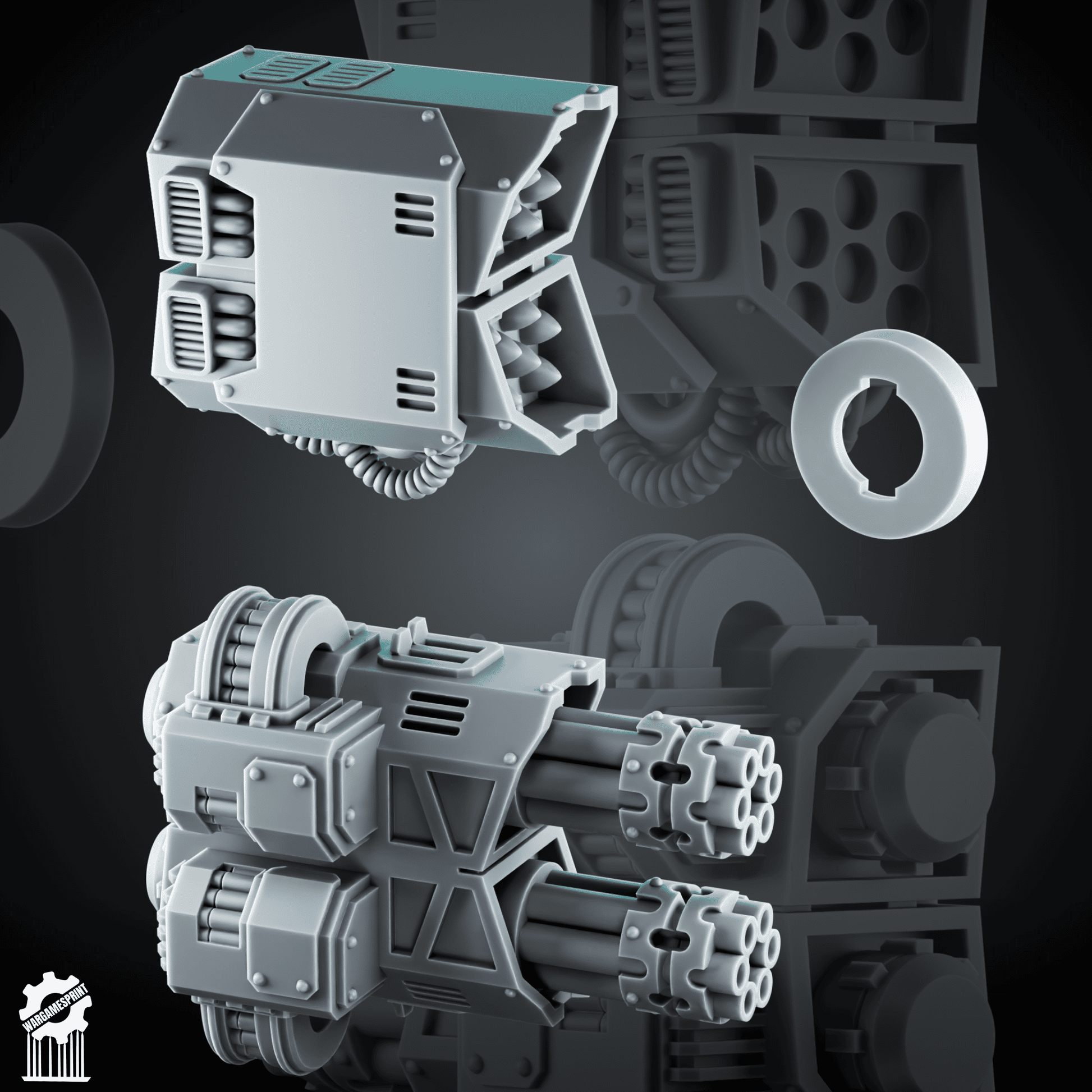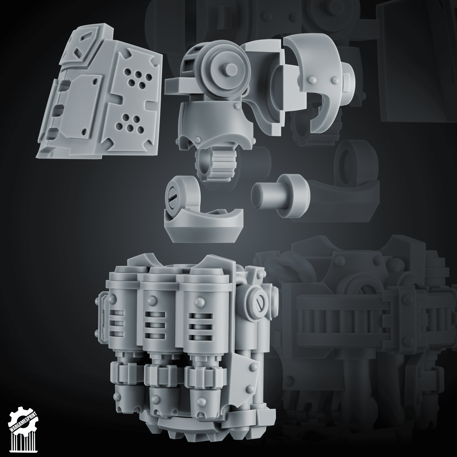 – Heavy fists with arms, pauldrons & optional gatling module