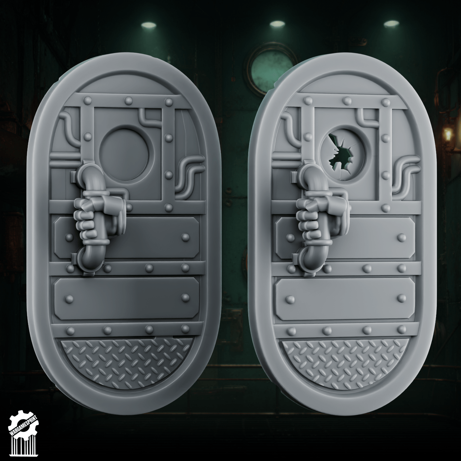This set includes 5 Leviathan Vanguard Terminator shields, blending maritime, abyssal and steampunk elements.