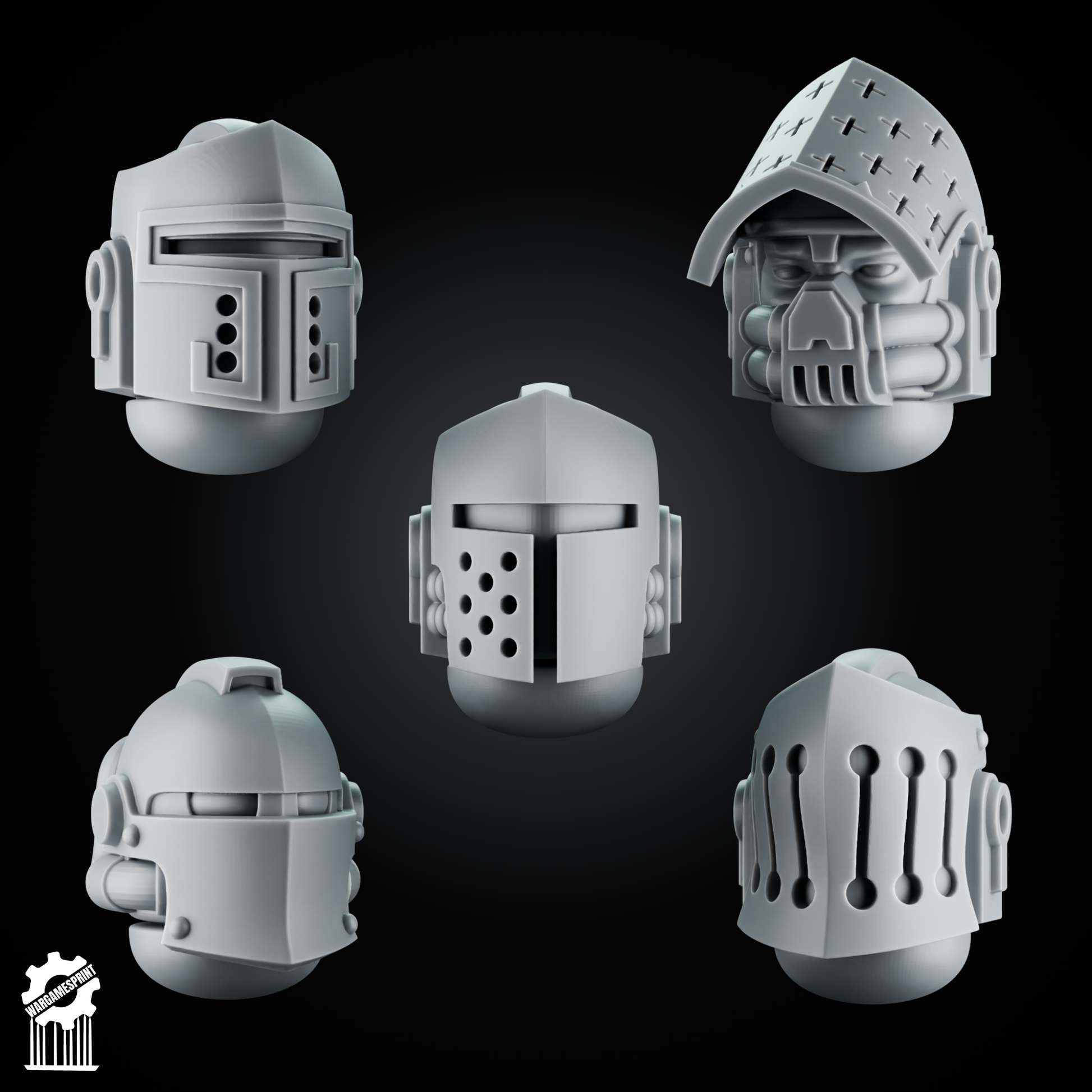 5 Crusader Helmets – SET 1 – Grimdark Knight Heads [Supported]