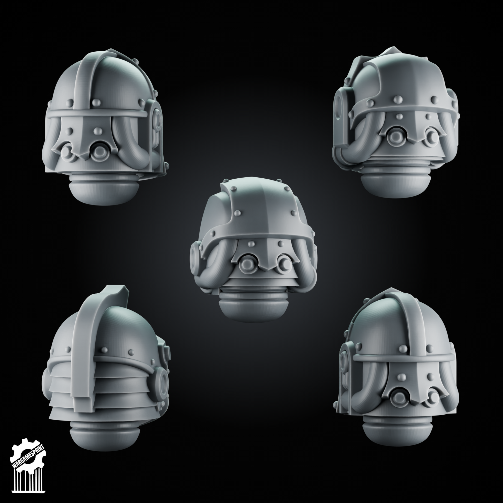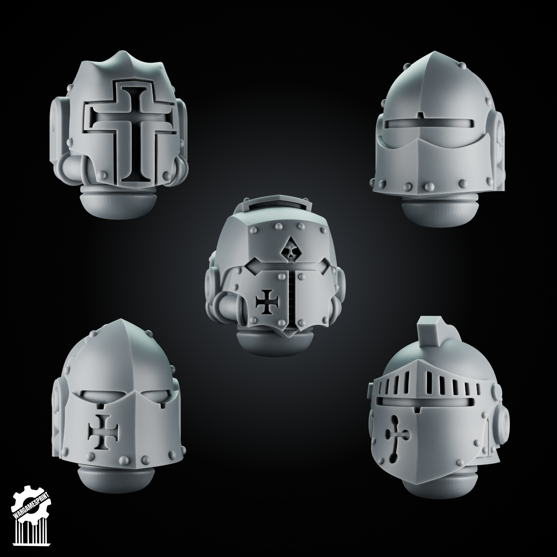 5 Crusader Helmets – SET 4 – Grimdark Knight Heads [Supported]