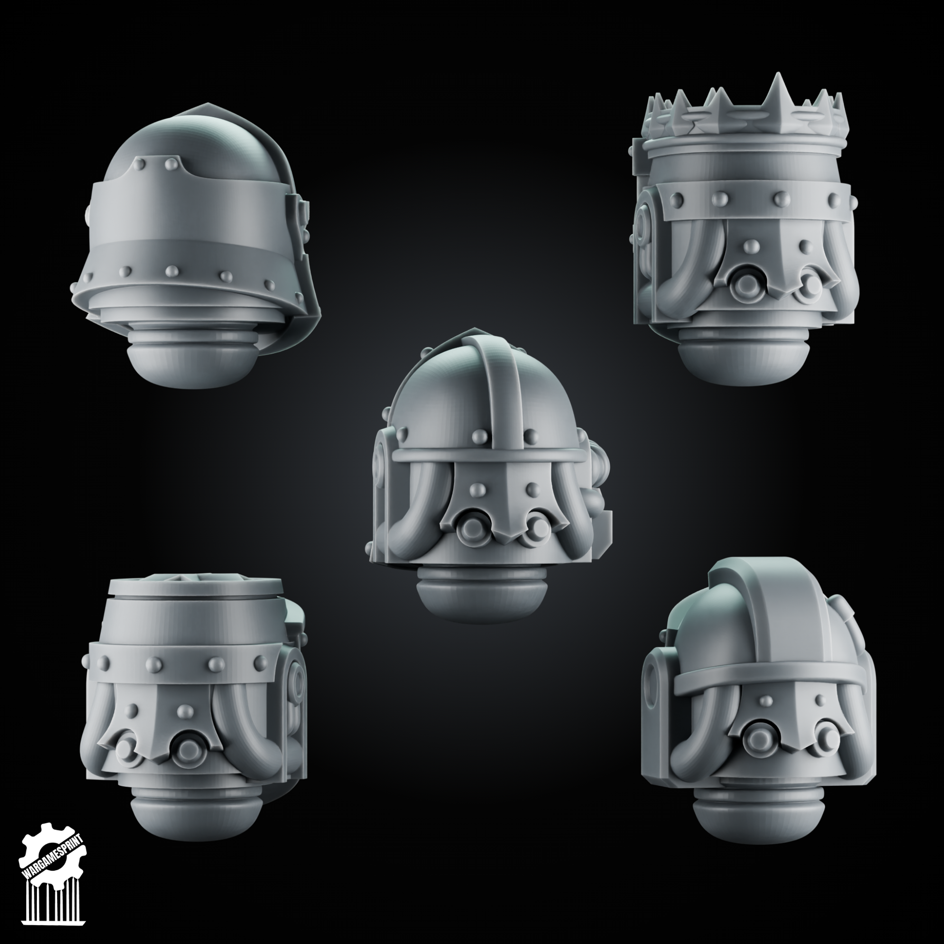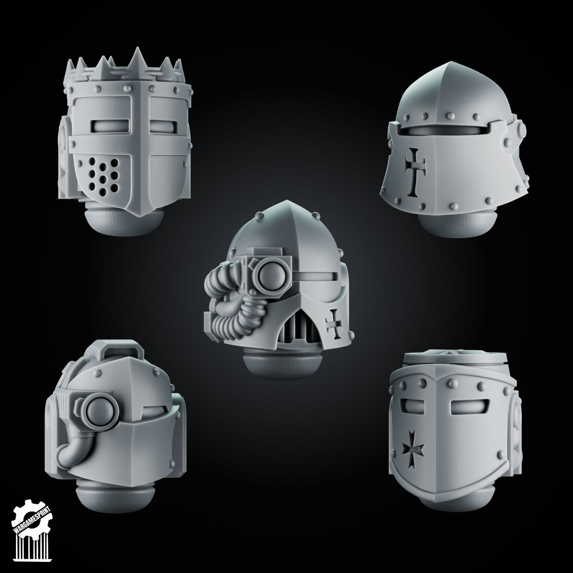 5 Crusader Helmets – SET 5 – Grimdark Knight Heads [Supported]