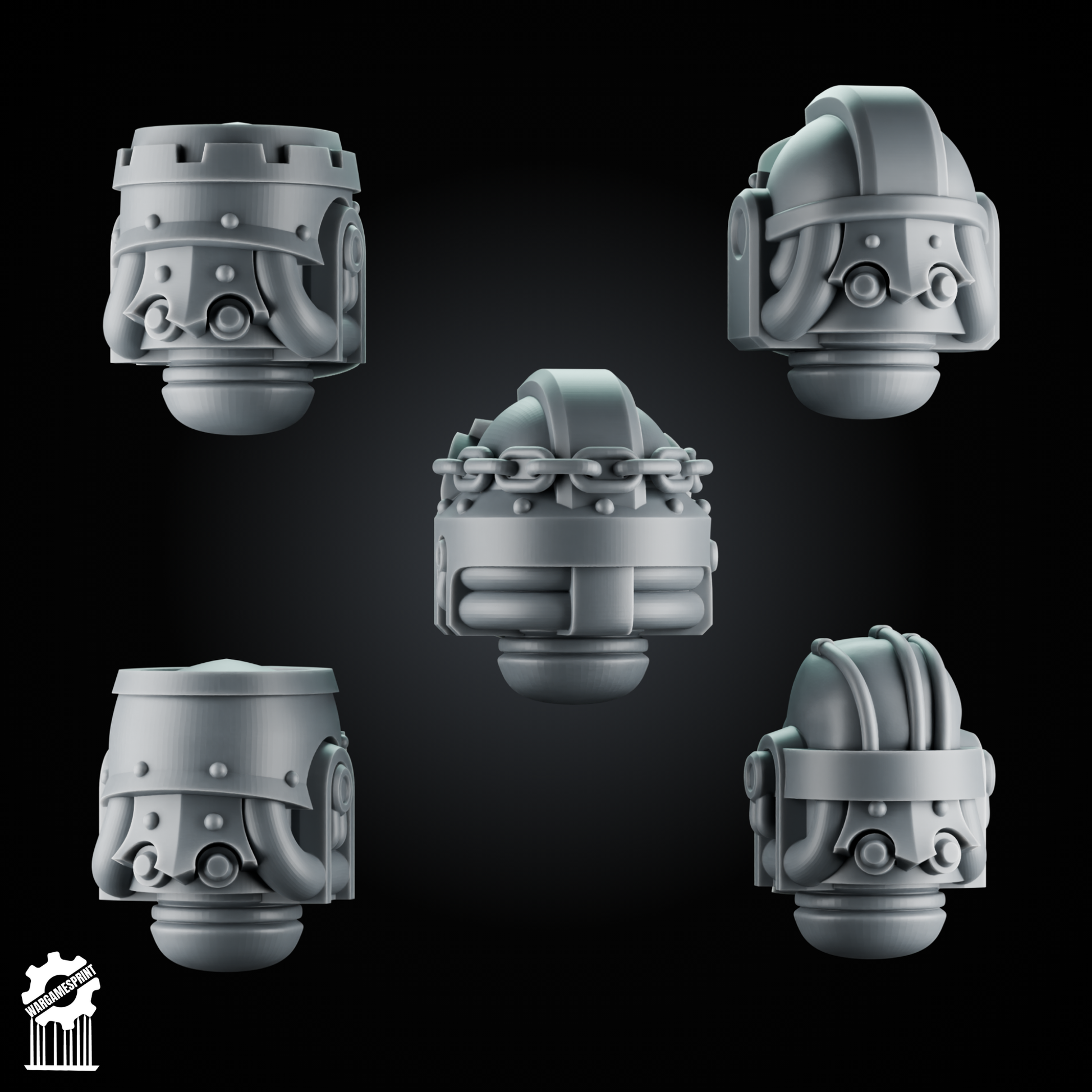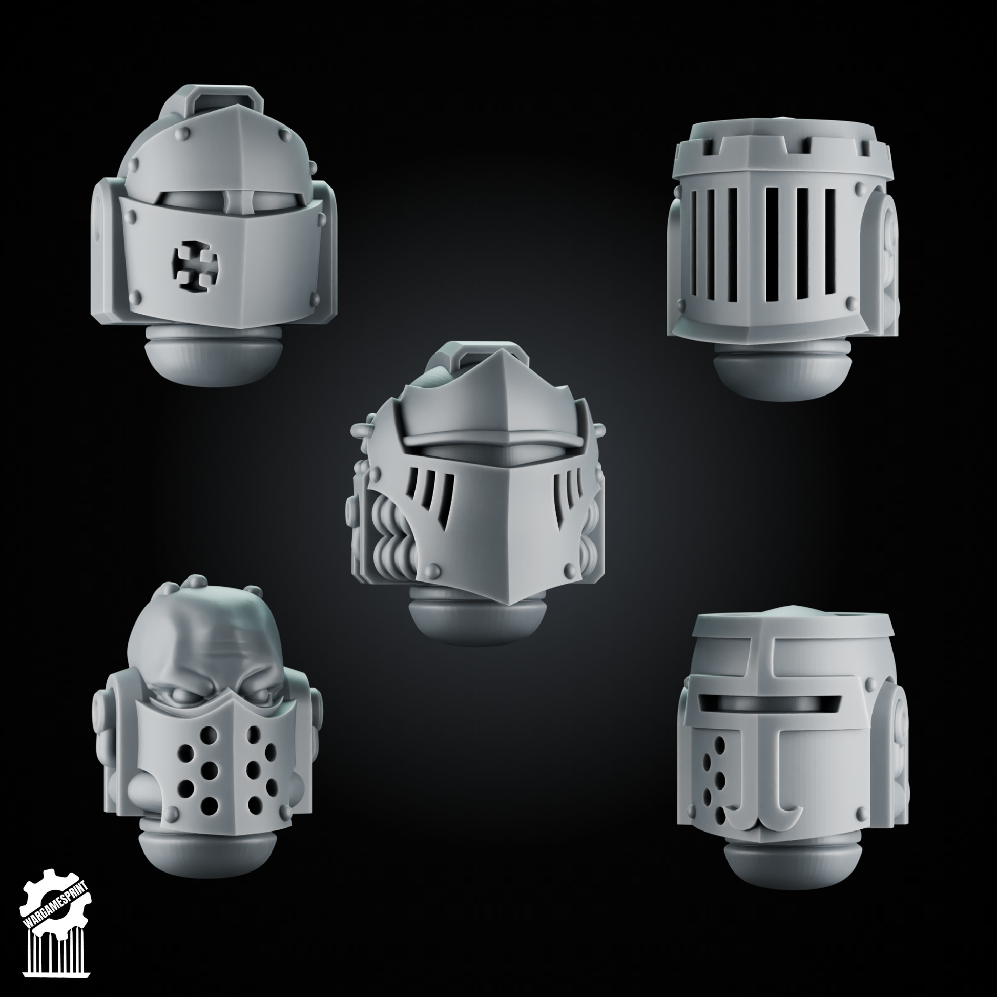 5 Crusader Helmets – SET 8 – Grimdark Knight Heads [Supported]