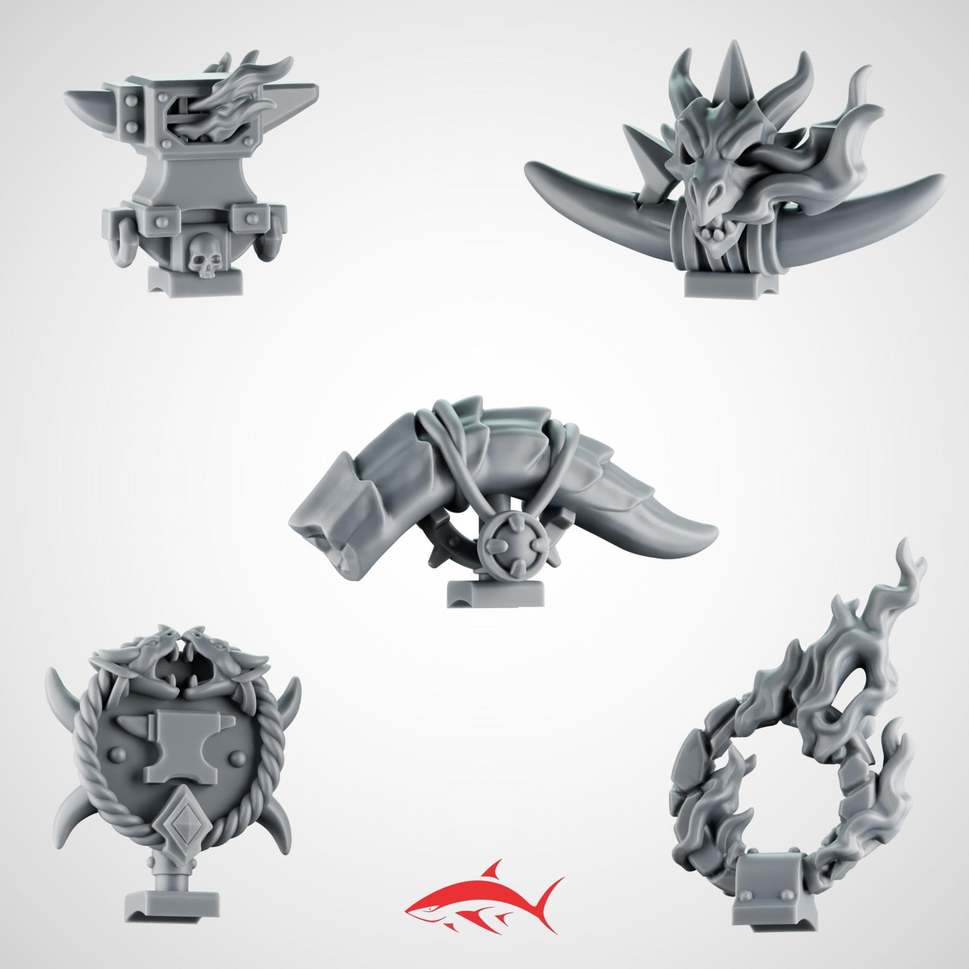 5 Greytide Backpack Toppers for Fire Lizard – Flames, Braziers, Engine Vents & Halo Crests