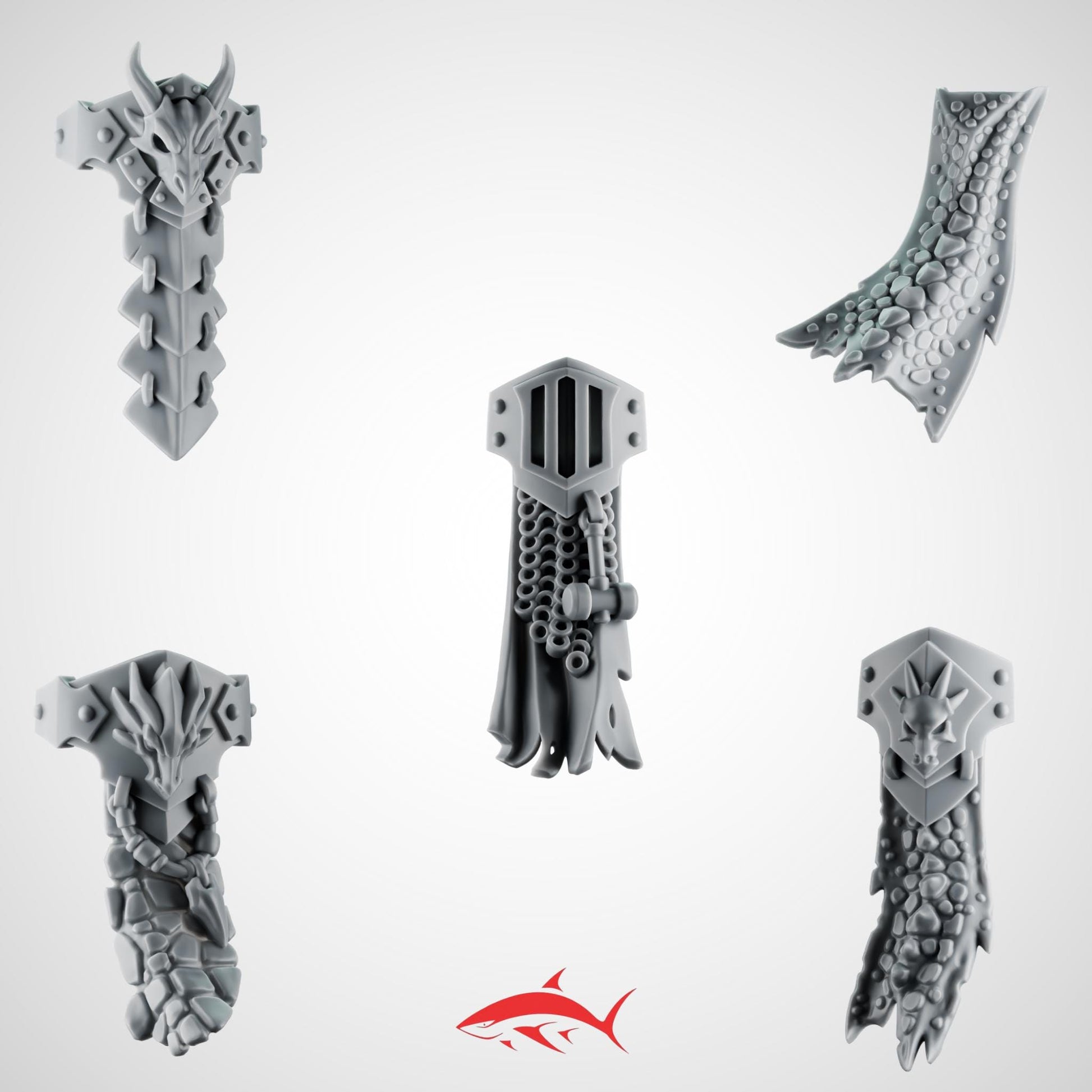 5 Loincloths Greytide for Fire Lizard – Dragon Skull and skin, Fangs, Stone & Riveted Plates