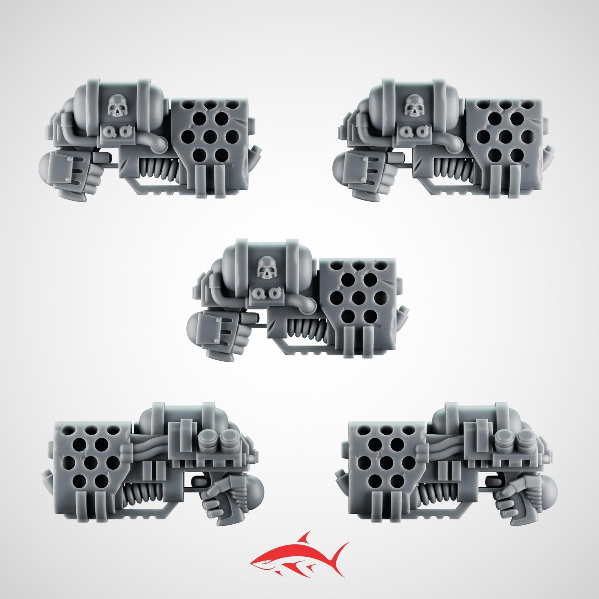 5 Terminator Heavy Flamers – Heavy Weapons with Mechanical Details – Ultra HD 14K Resin