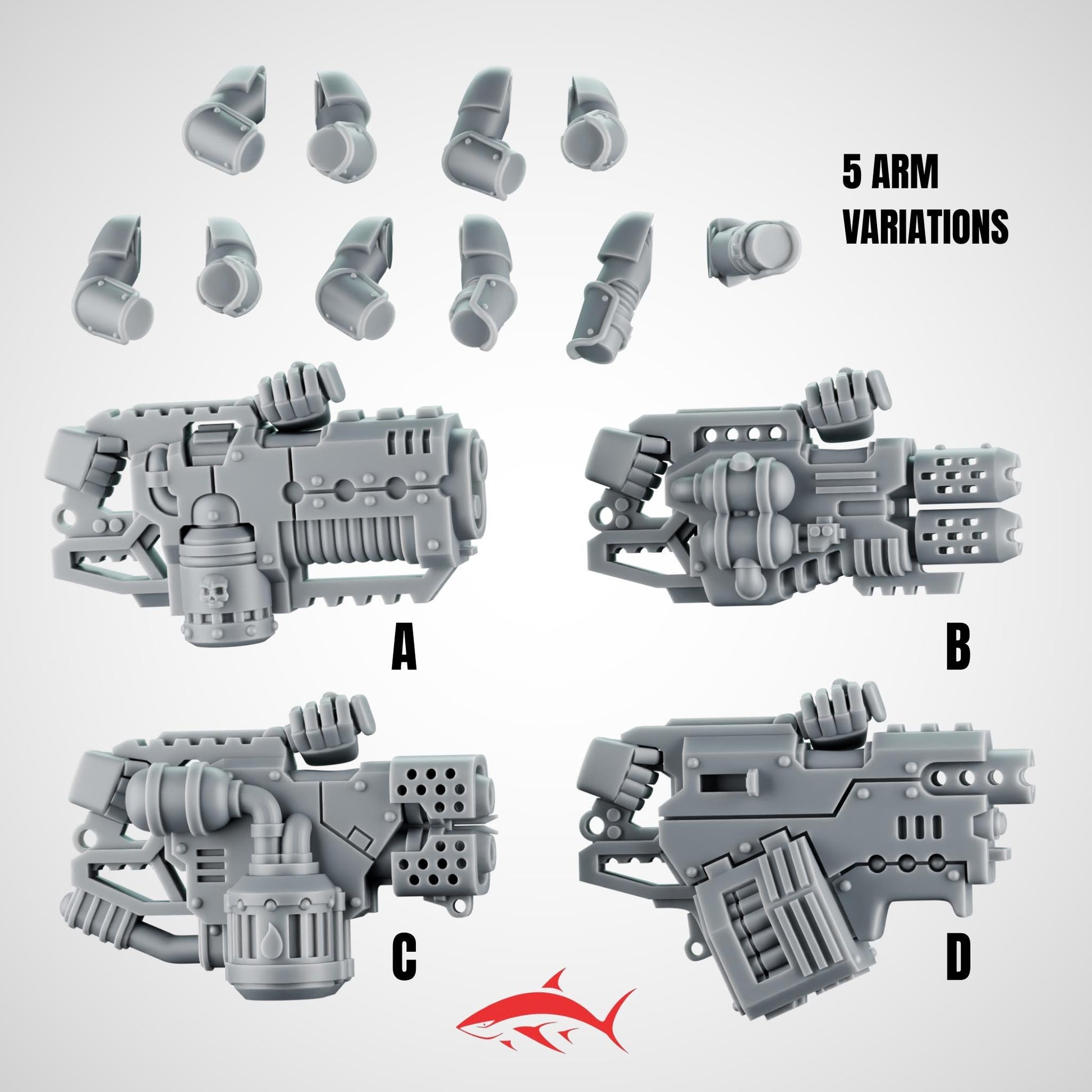 Each weapon is meticulously sculpted with mechanical details and a rugged design, perfect for kitbashing or custom conversions.Made in Ultra-HD 14K resin for incredibly fine detail.