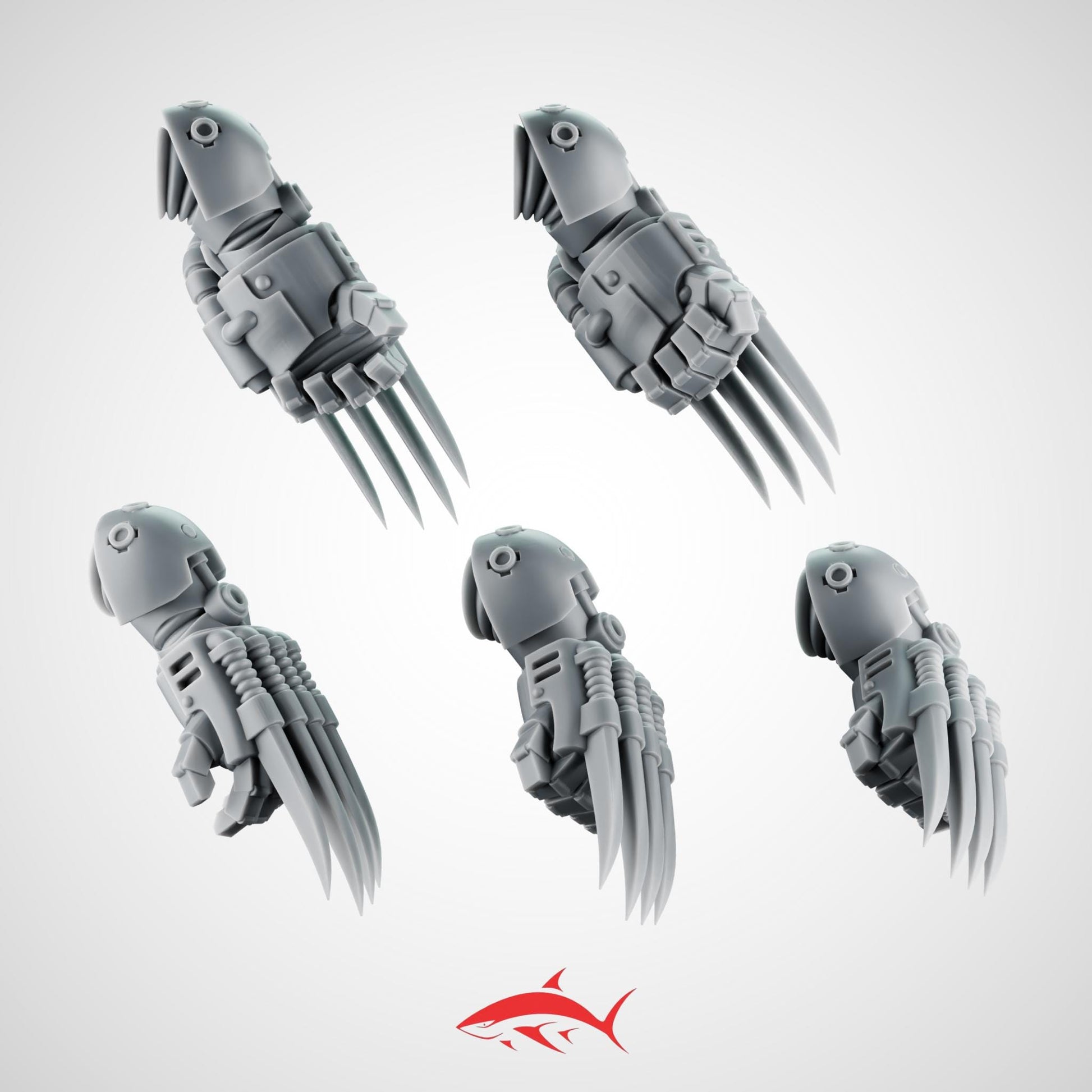 Add razor-sharp striking power to your Heavy Guard units with this set of 5 lightning claws. Designed for close combat, they feature long, curved blades mounted on armored gauntlets with striking mechanical detail.