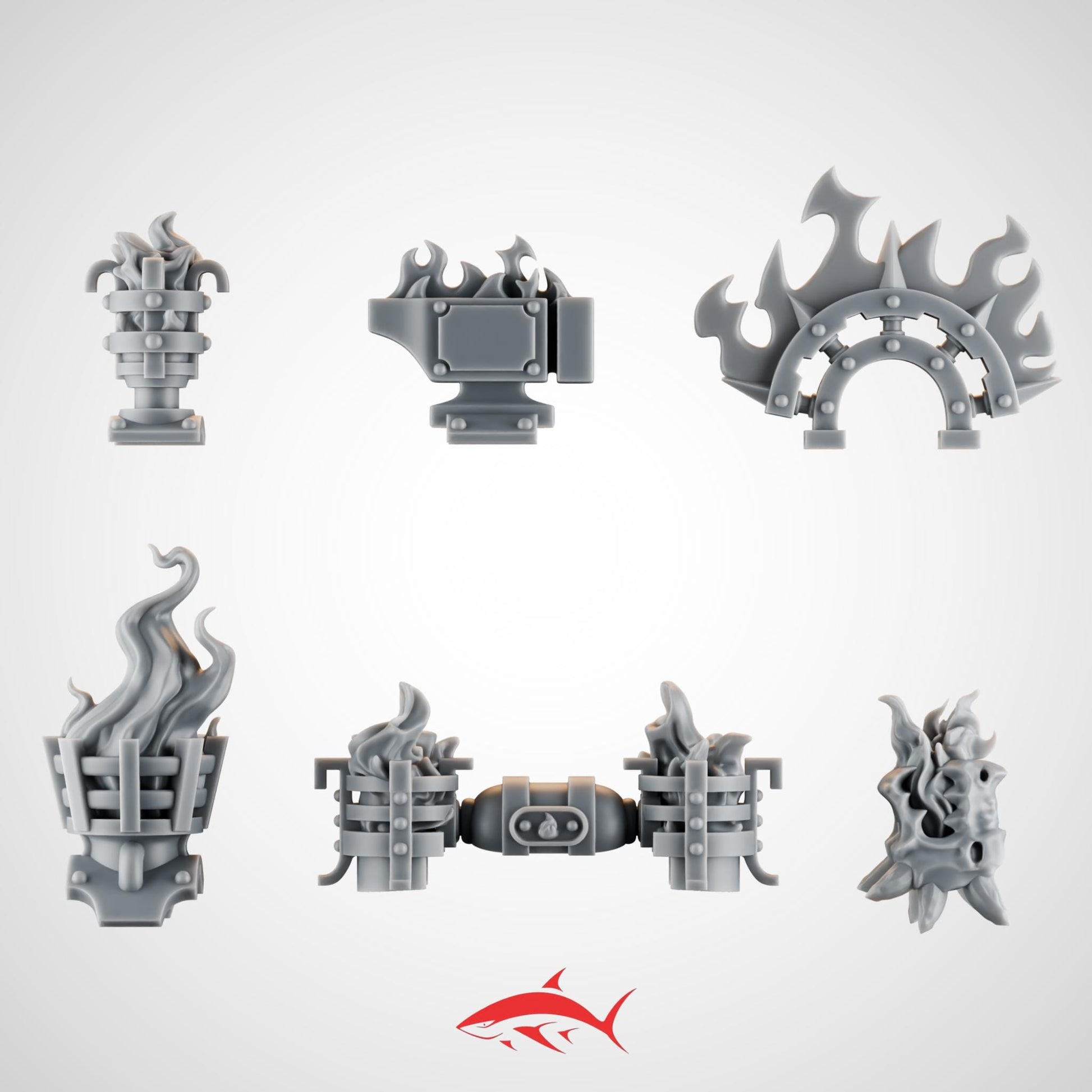6 Ember Forge Backpack Toppers for Fire Lizard – Flames, Braziers, Engine Vents & Halo Crests