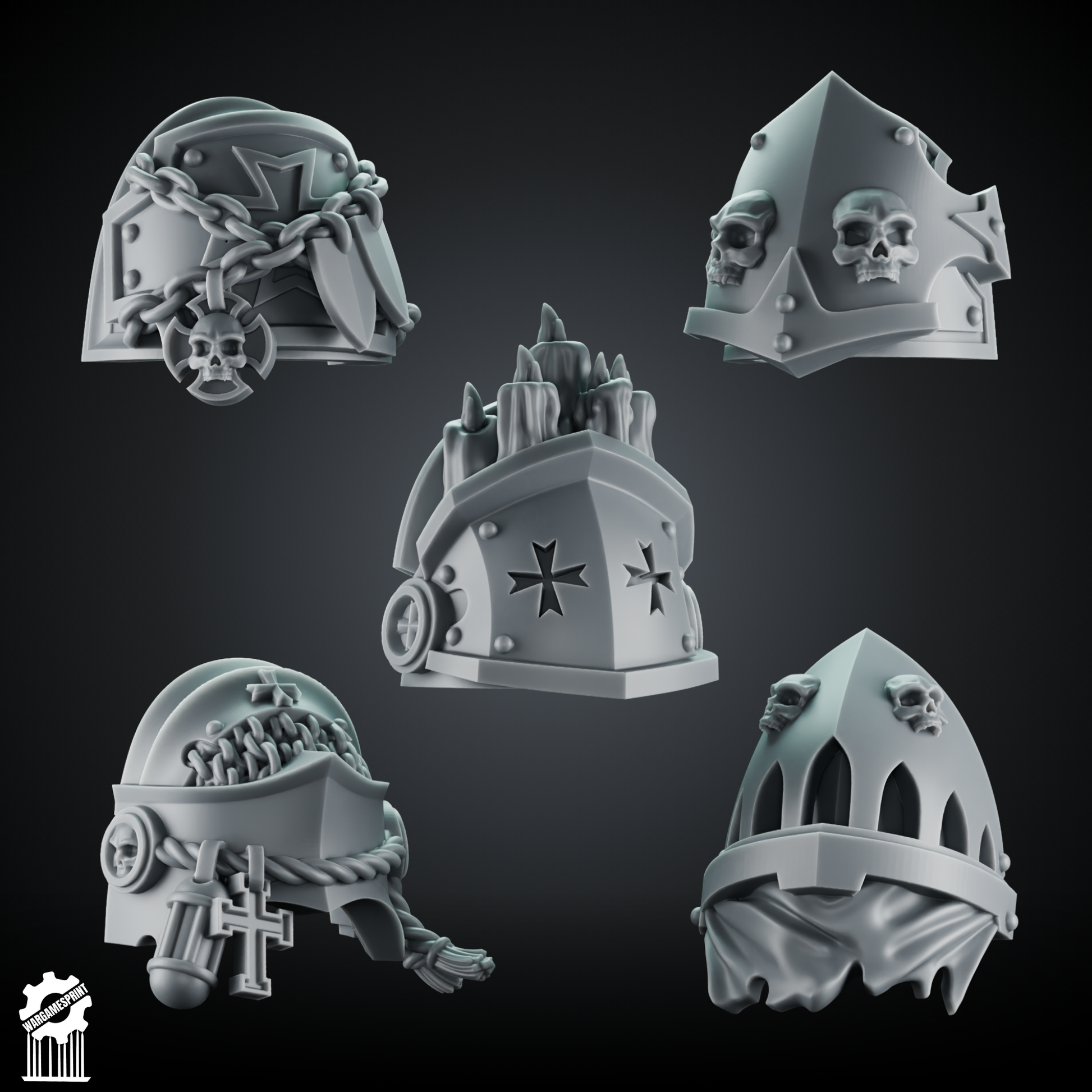 Crusader Shoulder Pad Set 1 – 5 Gothic Pauldrons + Heroic 32mm Scale [Supported]