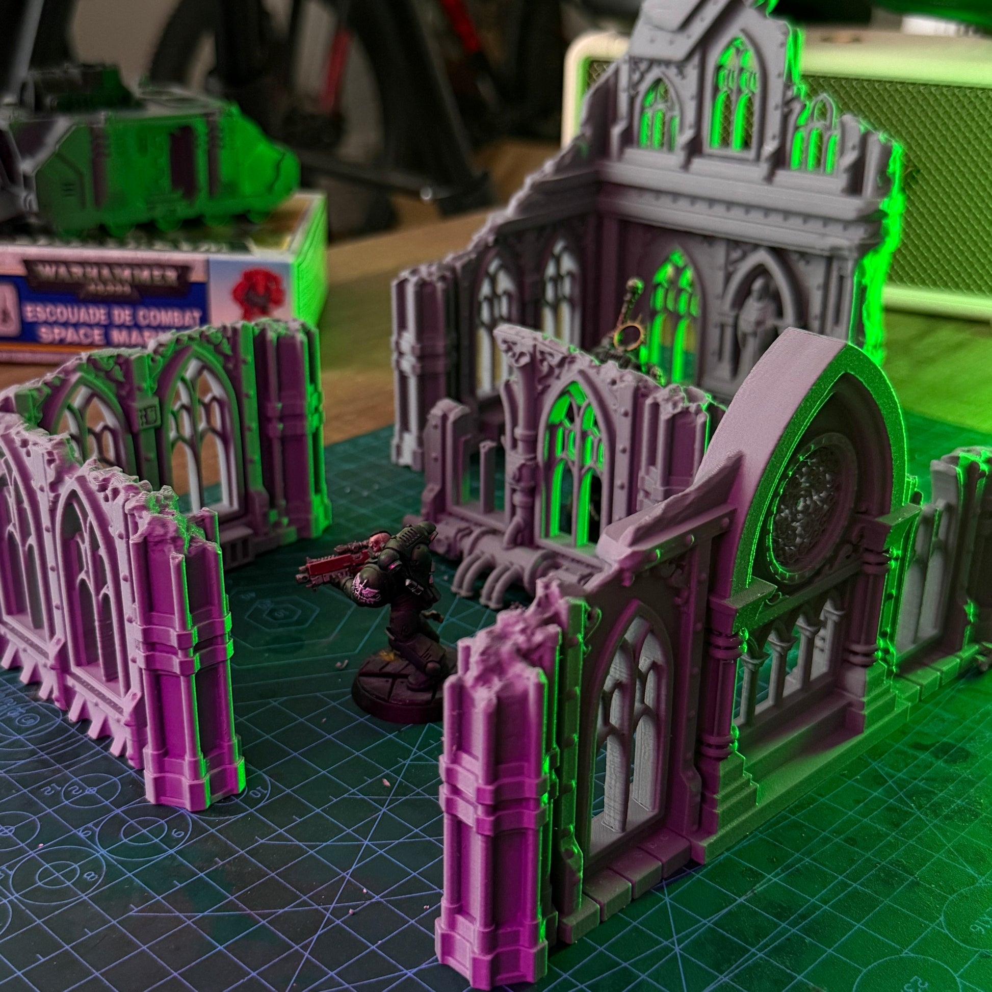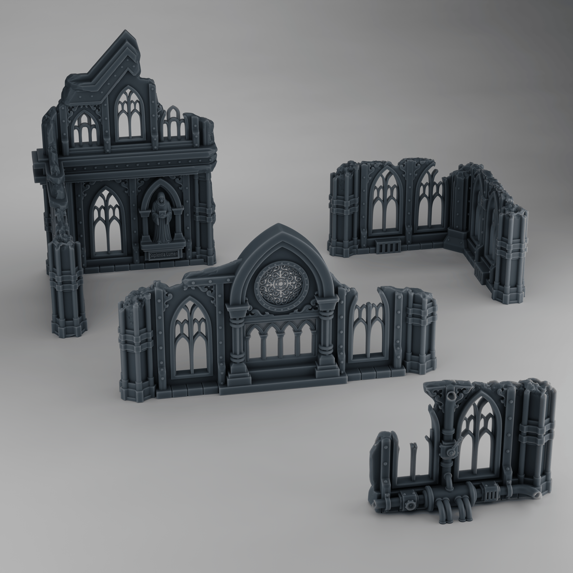 4 church ruin modules Gothic - Wargame Scenery 28mm / 32mm - Grimdark Terrain - Scenery 3D Print Tabletop