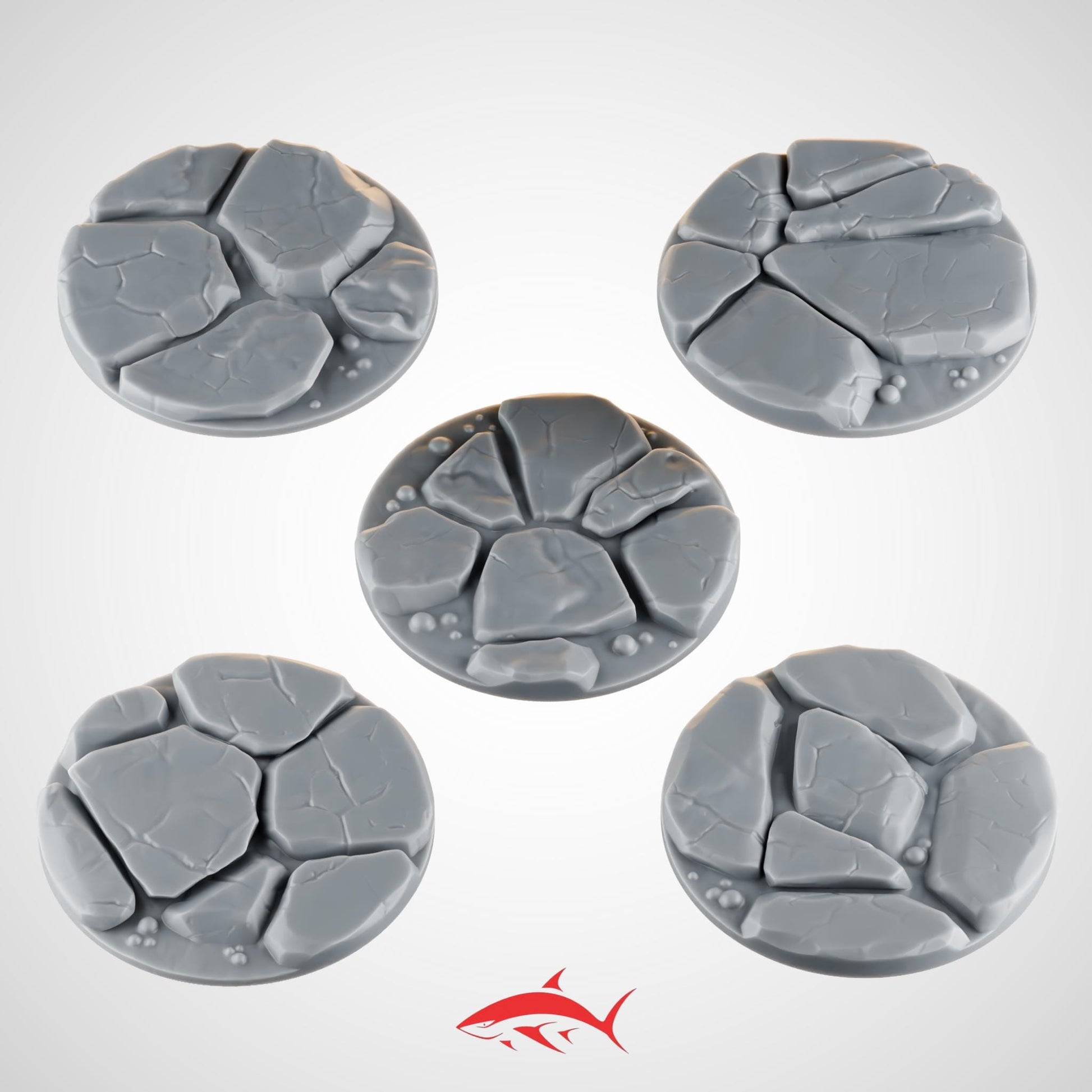 Set 1 – 5 Rocky Base Toppers 32mm Ember Forge for Fire Lizard – Cracked Stone & Rubble Ground