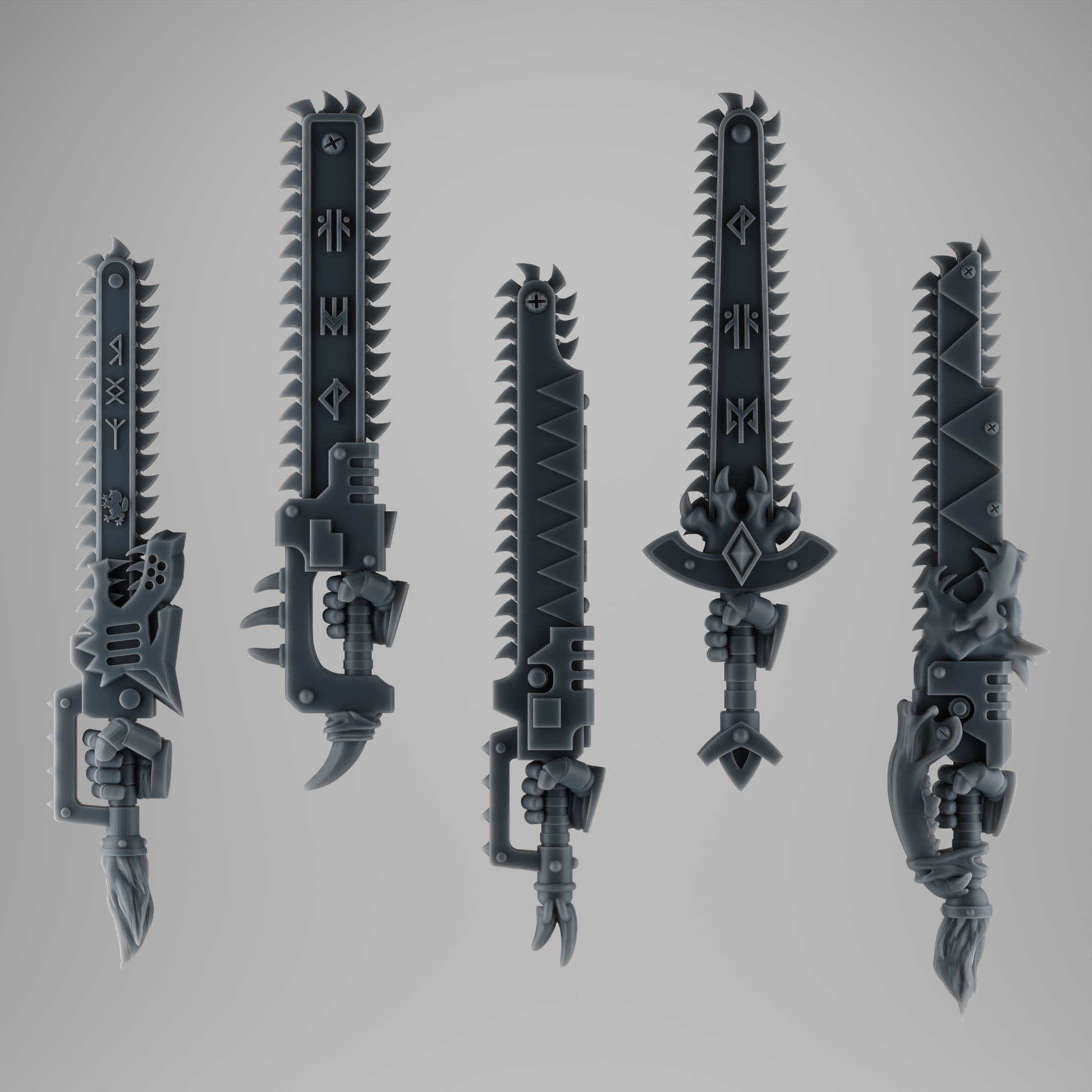 SET 1 - 5 Rune Chainswords – Viking Wolf Chain Blades for Kitbash – Grimdark Bits – 32mm