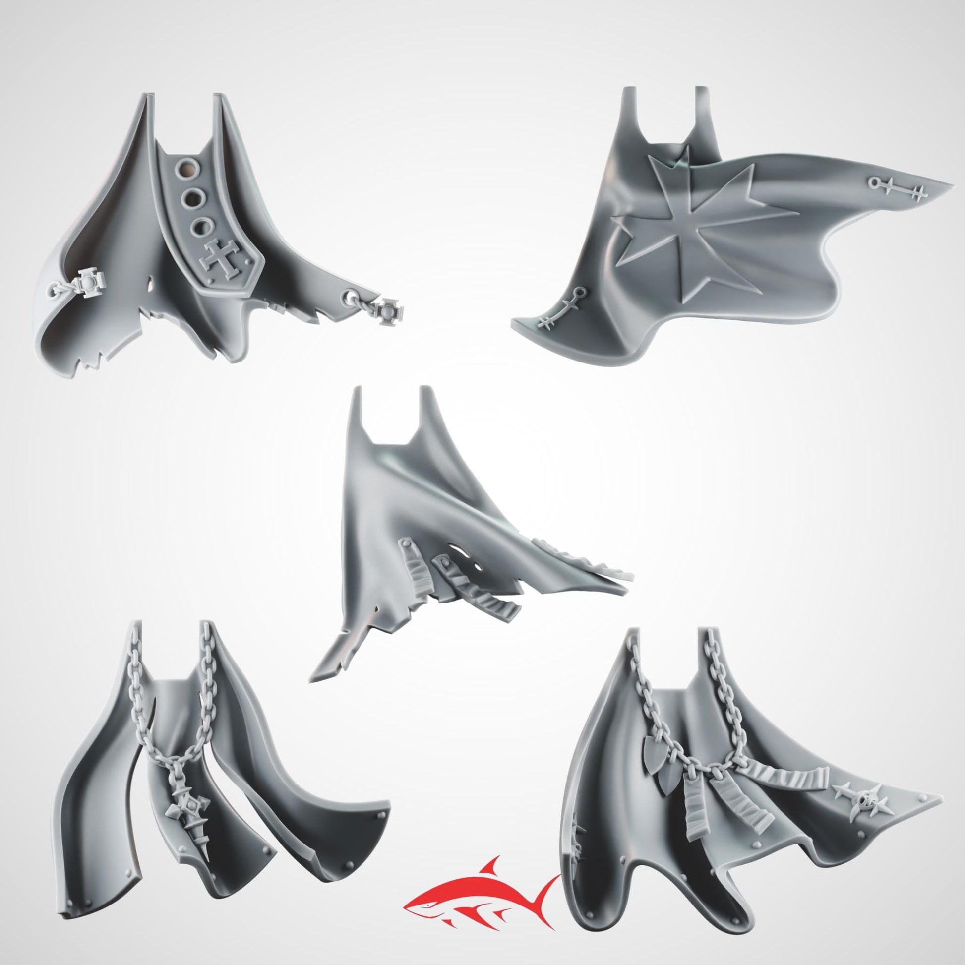 SET 1- Black Crusader Cloak With Cross And Chains - Bits Ultra HD 14K