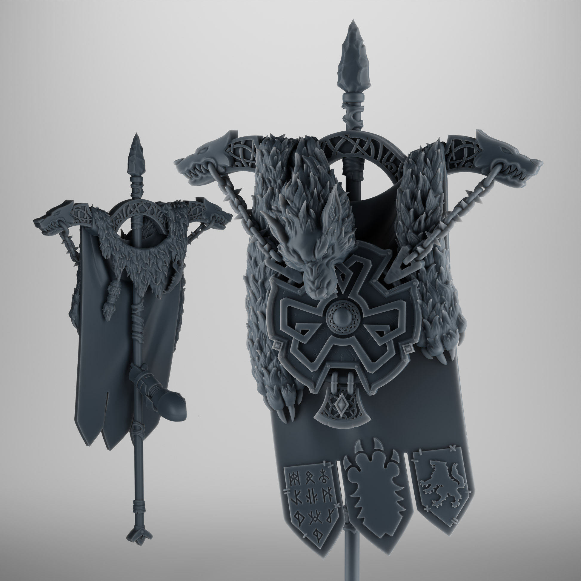 SET 1 - Viking Wolf Battle Banner – Rune Beast Hide Standard for 32mm Kitbash – Grimdark Accessory
