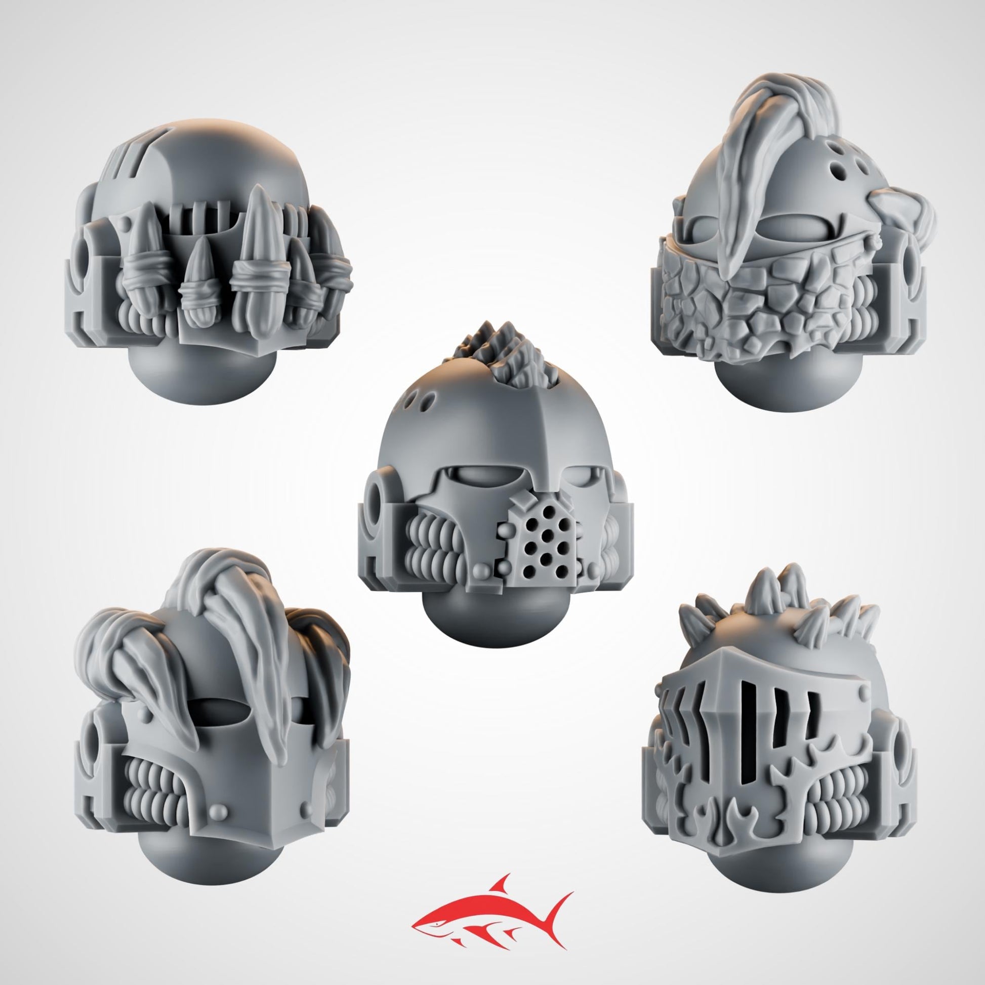 Set 2 – 5 Emberforge Heads for Fire Lizard – Horned Helms, Dragon-Skull Masks & Lava-Scale Visors