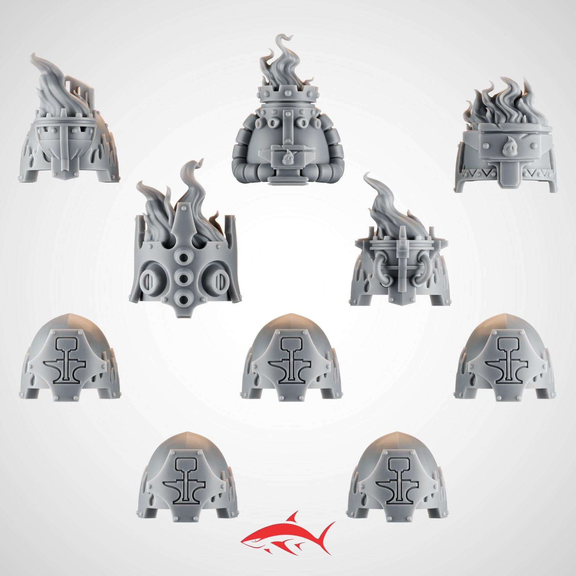 Set 3 – 10 Ember Forge Shoulder Pads for Fire Lizard – Flames, Chains, Spikes, Relics & Stone Motifs
