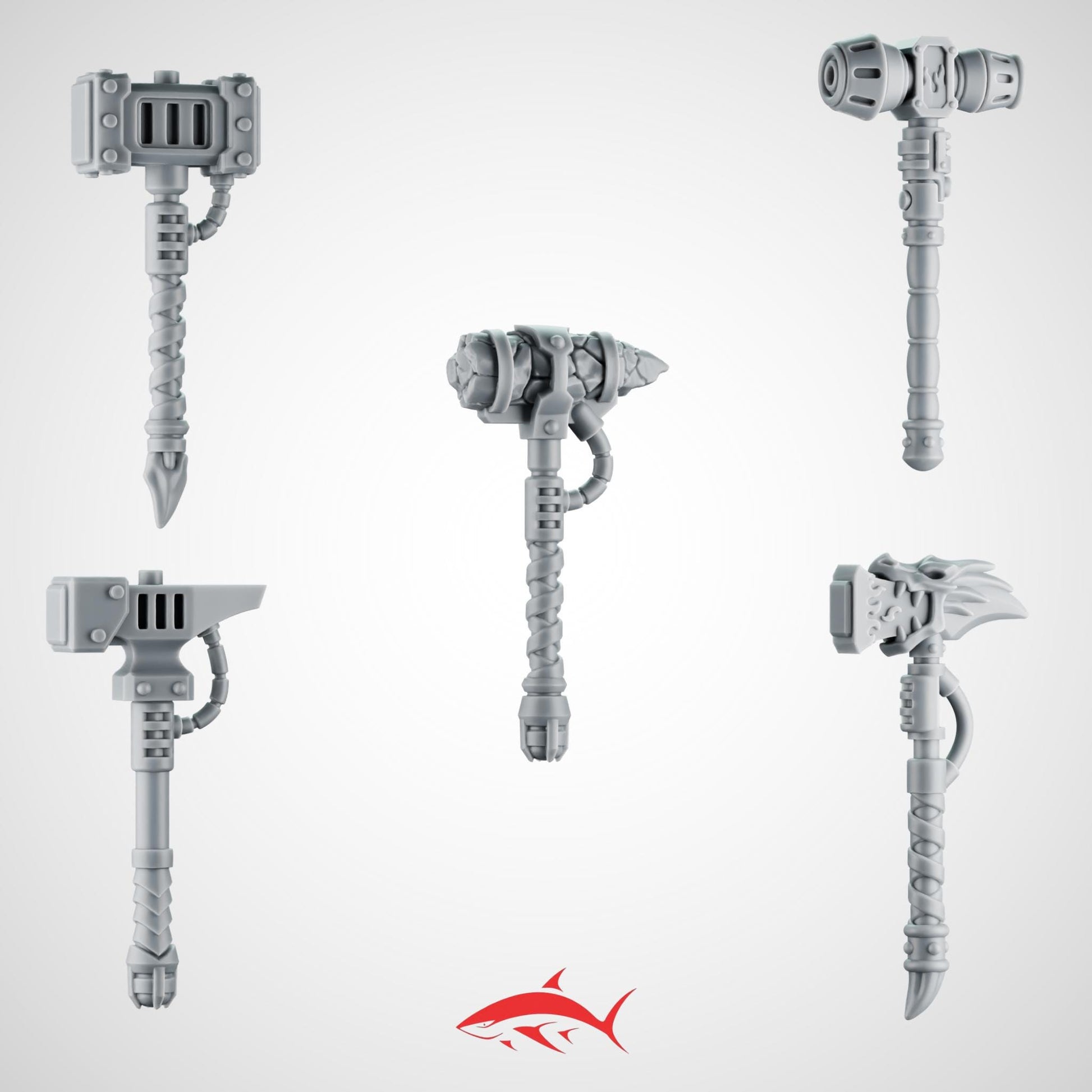 Set 4 – 5 Greytide Hammers without hands for Fire Lizard – Dragon-Head Mauls, Rune-Carved Blocks & Forge Emblems