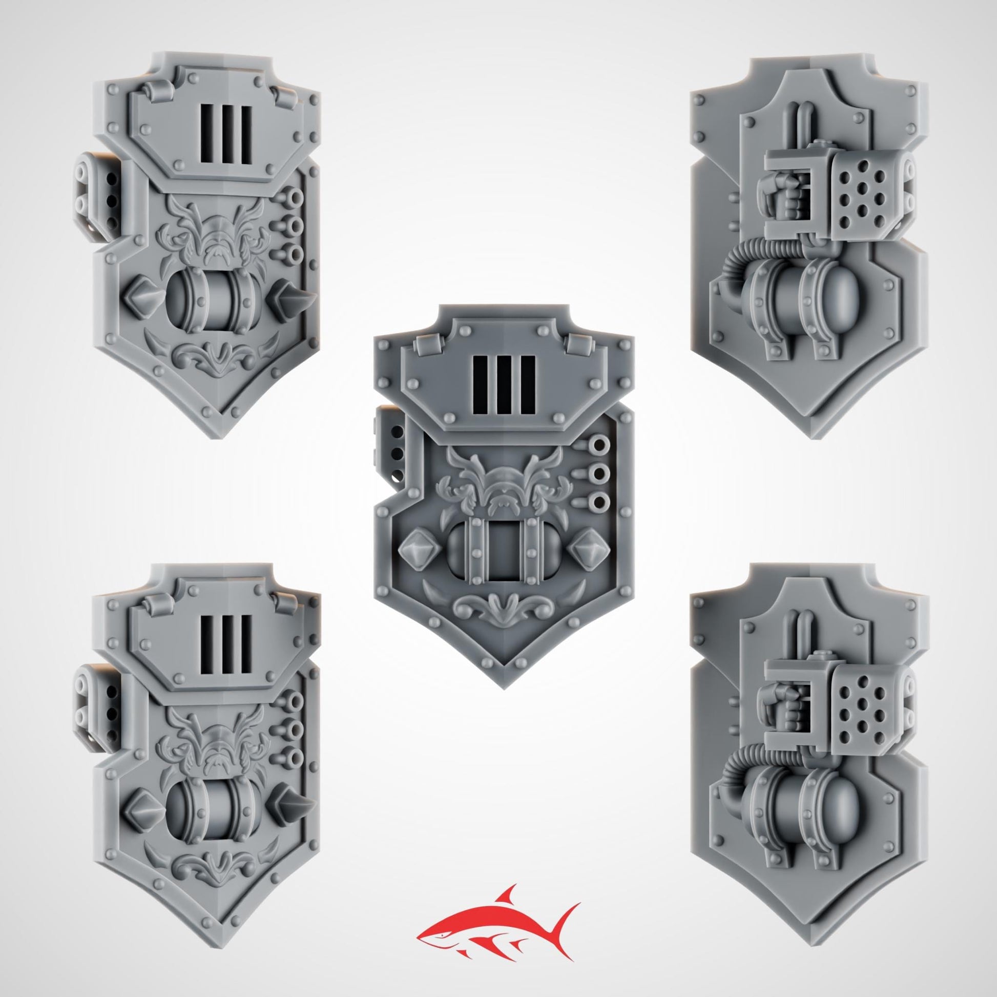 Set 4 – 5 Shields for Terminator Fire Lizard – Ember Forge - Industrial Vents, Pipework, Fuel Drums & Riveted Plates