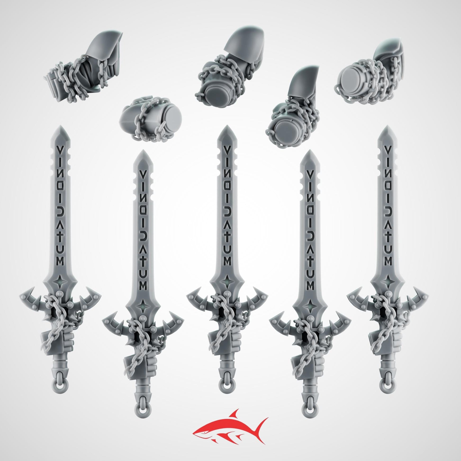 Set 5 - 5 Black Crusader Chain Swords – Knightly Power Blades with Chains to Arm – Ultra HD 14K