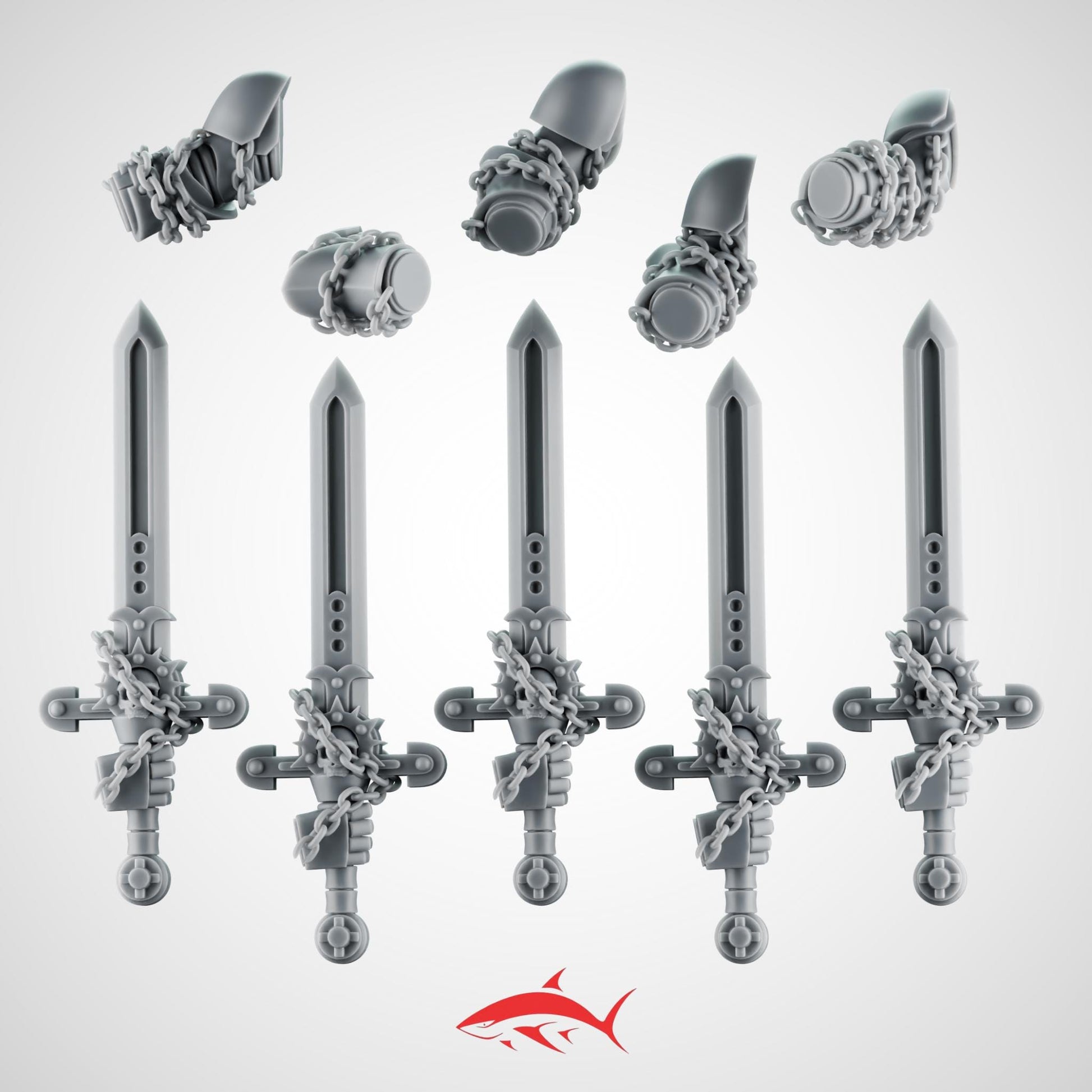 Set 6 - 5 Black Crusader Chain Swords – Knightly Power Blades with Chains to Arm – Ultra HD 14K