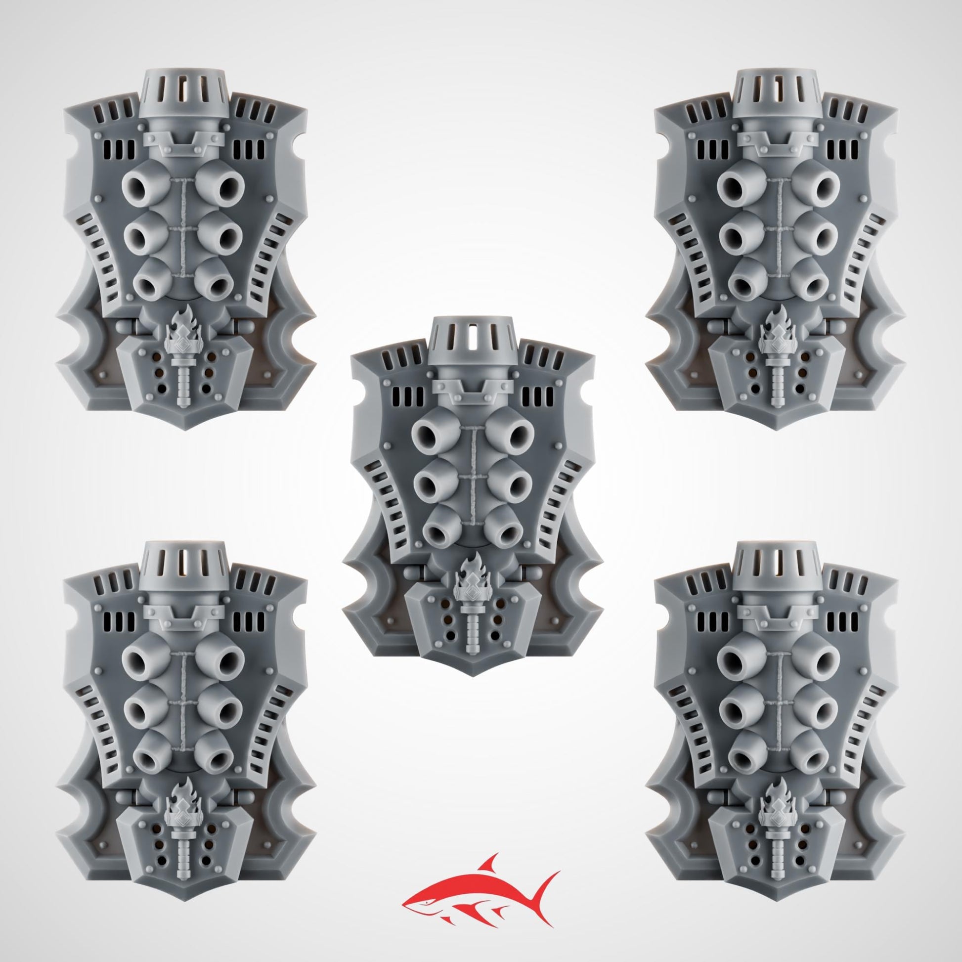 Set 6 - 5 Ember Forge Shields for Fire Lizard – Heat Vents, Exhaust Nozzles, Torch Emblems & Riveted Frames