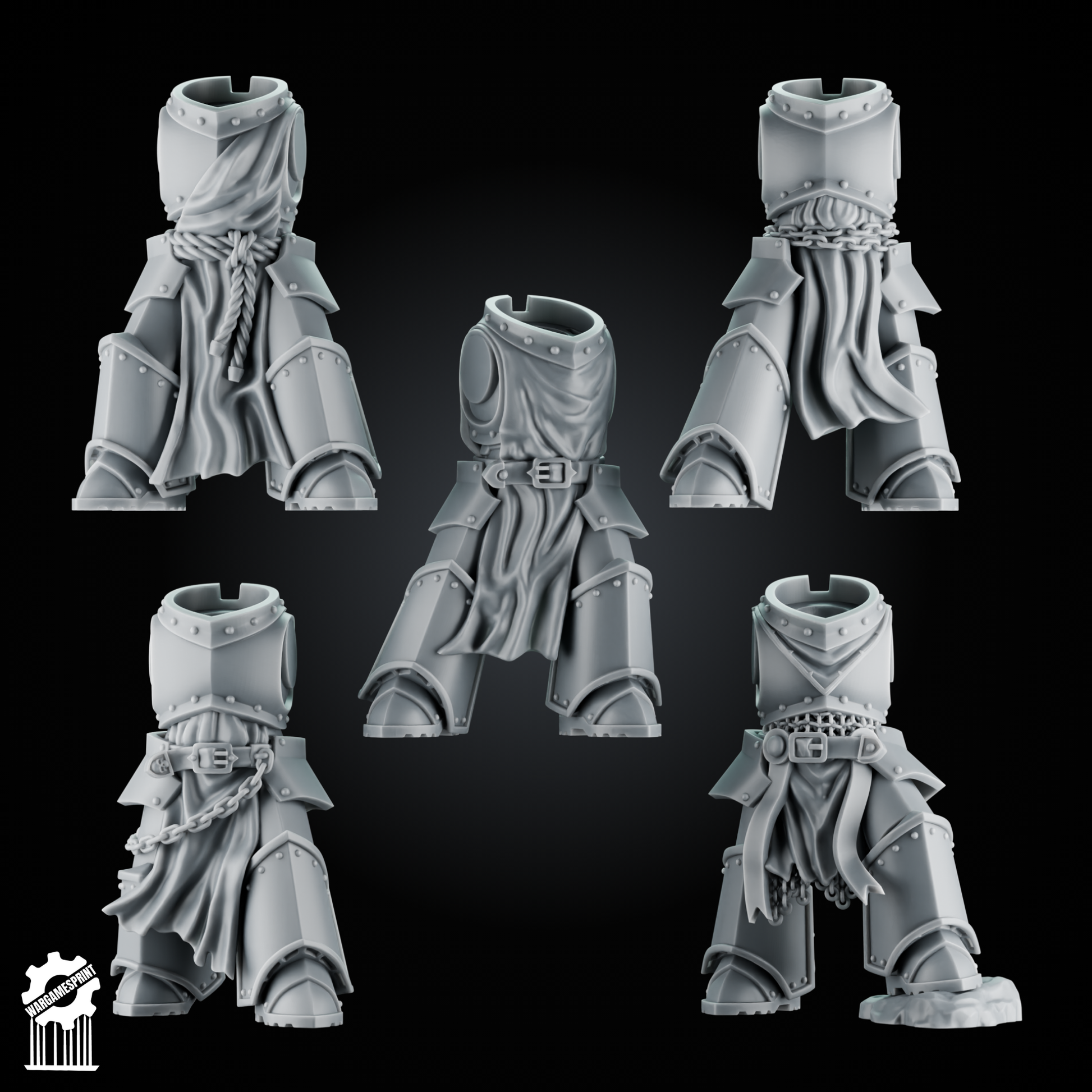 Each torso is sculpted with gothic knightly details, from heavy plate armor to sacred engravings, making them ideal for creating a grimdark crusading force.