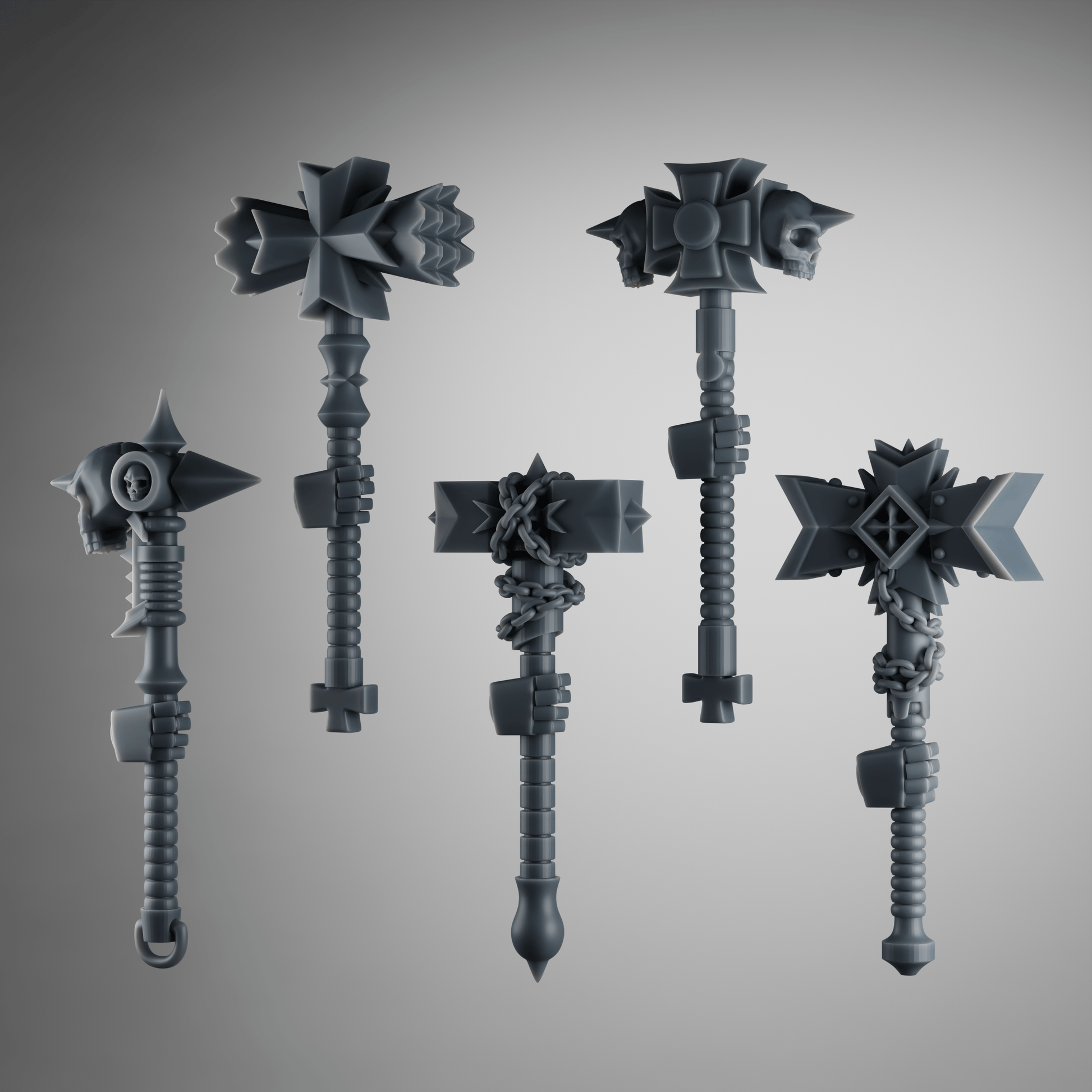 SET2 - Crusader Power Hammers – Gothic Melee Weapons for Black Crusade Knights – 32mm Kitbash Bits (x5)
